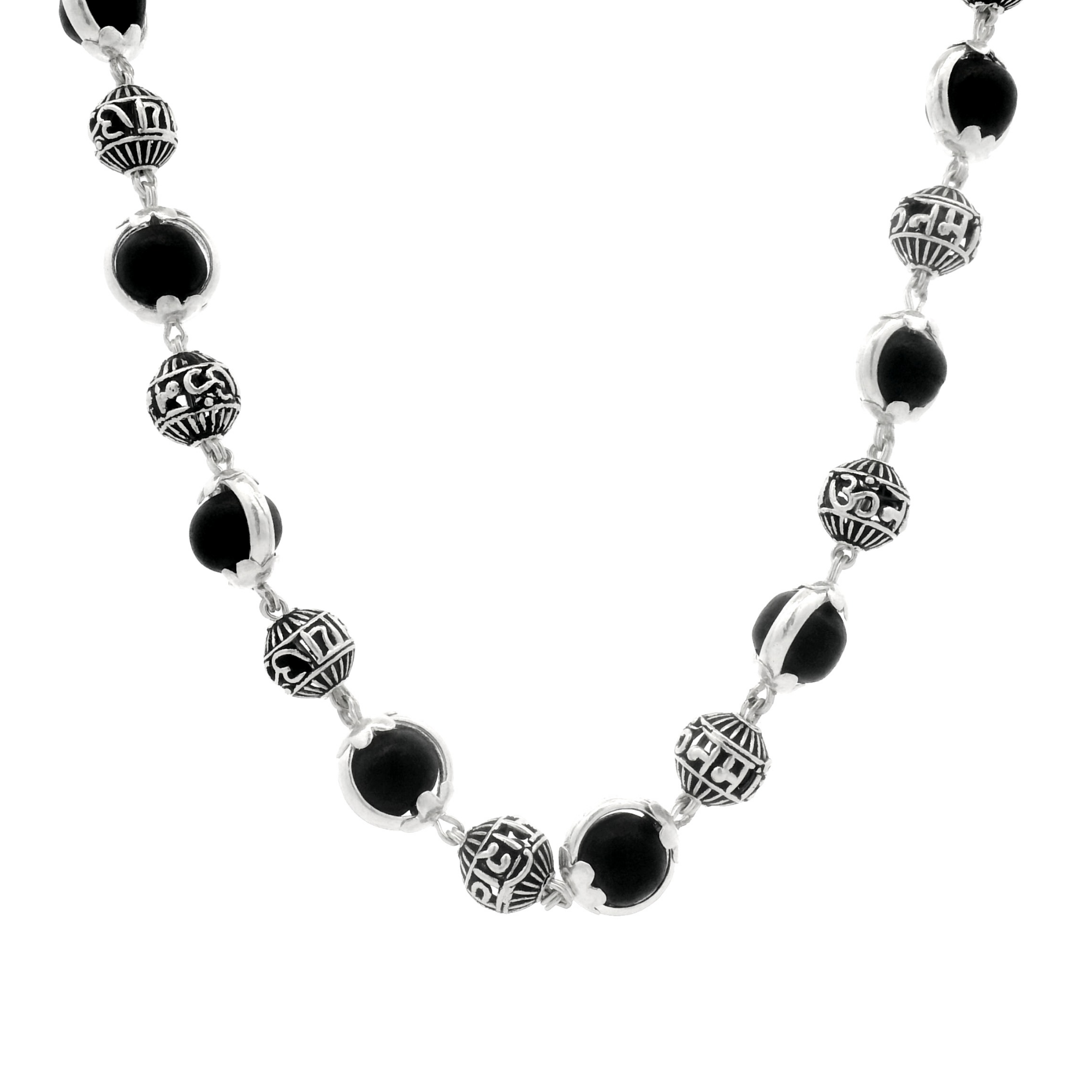 Variety Karungali + Circle Capping Silver Om Namah Shivay Beads