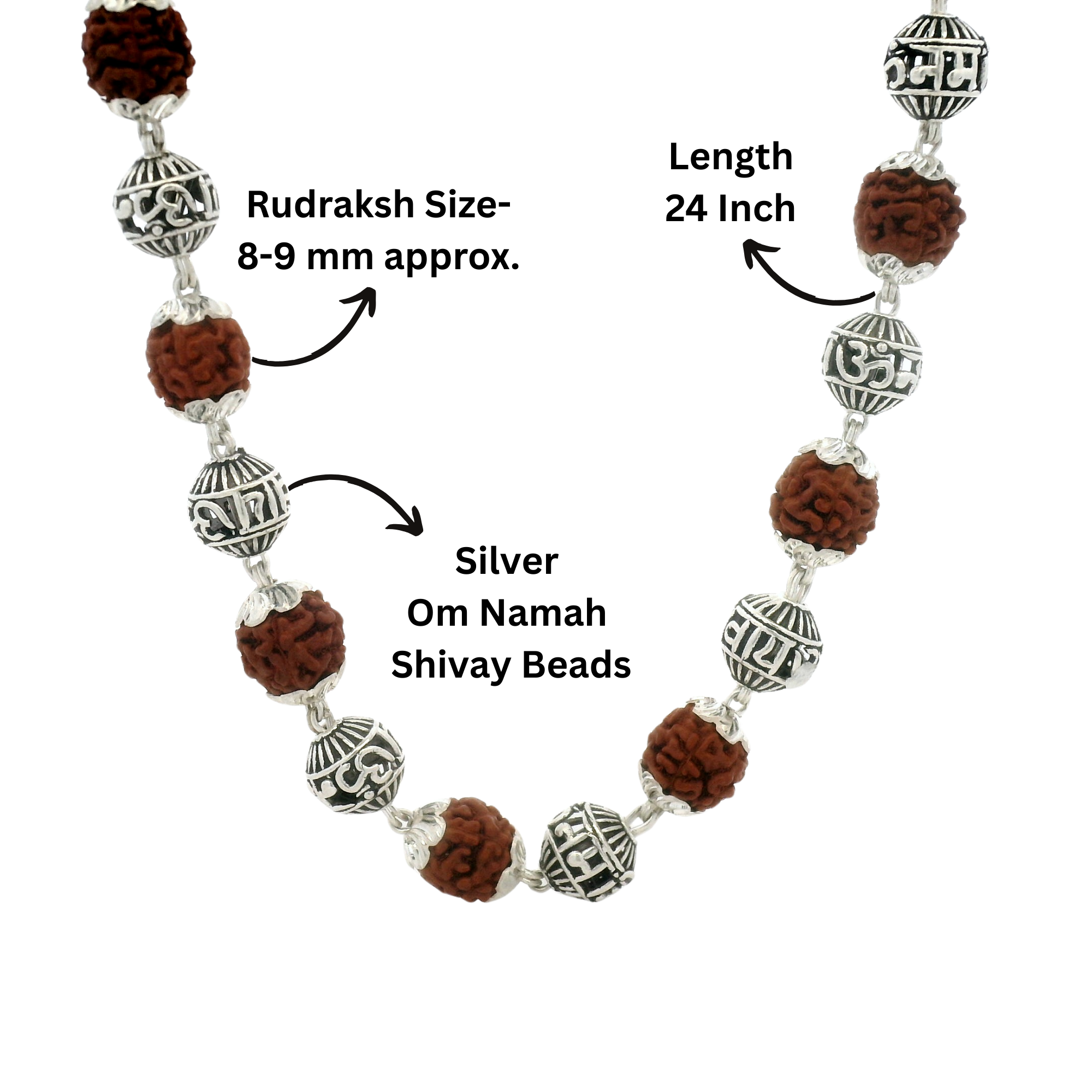| Name | RUDRAKSH SILVER NAMAH SHIVAYA MALA 925 8-9 MM |